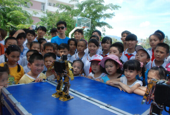 同時(shí),??陔娨暸_(tái)《寶貝真棒》欄目組還帶來(lái)了一系列精彩紛呈的兒童節(jié)目,海南省科技活動(dòng)中心還特意為孩子們派出了科普大篷車、帶來(lái)了3D科普展板,在專業(yè)航模老師的帶領(lǐng)下,來(lái)自城市里的三十個(gè)孩子和陵水的留守兒童結(jié)成了對(duì)子,一起制作航模,觀看機(jī)器人表演。