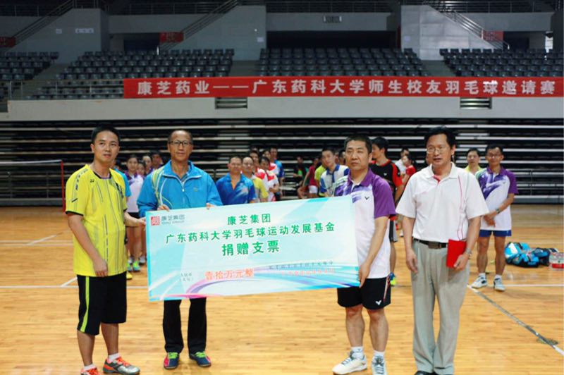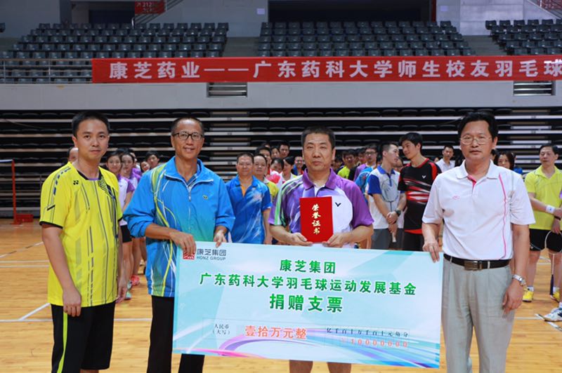 現(xiàn)場(chǎng),洪江游先生代表康芝集團(tuán)向母校廣東藥科大學(xué)捐贈(zèng)十萬(wàn)元啟動(dòng)“羽毛球運(yùn)動(dòng)發(fā)展基金”,廣東藥科大學(xué)校友辦公室主任梁志雄先生向洪江游董事長(zhǎng)授予了榮譽(yù)證書。