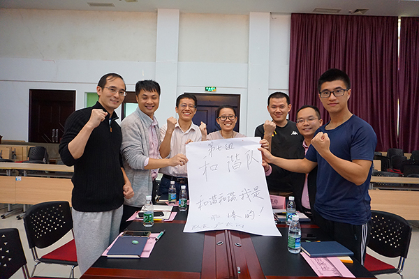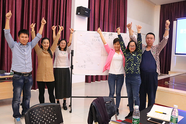 12月15號下午,來自全國各地的康芝藥業(yè)精英儲干們匯聚在海南總廠大禮堂,興奮而有序的進行簽到,并佩戴好康芝學(xué)院?;眨瑴蕰r在小組內(nèi)落座。當天下午的培訓(xùn)以團隊建設(shè)為主,由康芝學(xué)院院長胡明坤先生主導(dǎo),帶領(lǐng)所有學(xué)員進行了破冰活動和團隊建設(shè)活動。在團隊建設(shè)環(huán)節(jié),學(xué)員們集思廣益、積極熱烈,最終各種有趣的隊名紛沓而至,如油雞隊、五湖四海、天南海北、和諧隊、南北精英隊等等,但無不透露著康芝人南北一家、五湖一家、和諧一家的團結(jié)心態(tài)。