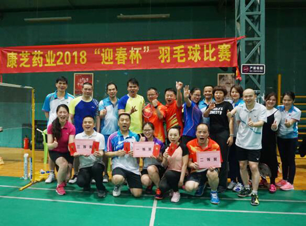 2月23日,康芝藥業(yè)2018“迎春杯”羽毛球比賽在區(qū)莊弘揚羽毛球館圓滿舉行??抵ニ帢I(yè)董事長洪江游、工會主席龍殿康、OTC事業(yè)部全國銷售總監(jiān)黃孝松、OTC事業(yè)部市場總監(jiān)陳艷杰,以及各個部門的同事一同到球館參加比賽。