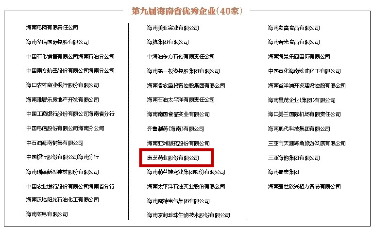 其中,知名兒童藥上市企業(yè)康芝藥業(yè)繼2016年登榜后,今年再度成功入選,榮獲第九屆“海南省優(yōu)秀企業(yè)”稱(chēng)號(hào)。