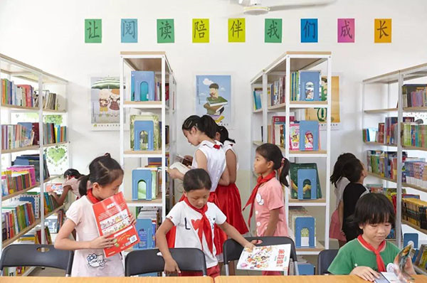 據統(tǒng)計,30%的城市兒童擁有88.9%的兒童讀物,70%的農村兒童只擁有11.1%的兒童讀物,圖書資源分配嚴重不均??抵ゼt臉蛋基金于2016年發(fā)起“紅臉蛋圖書館”項目,先后走進廣西、江西、河南、云南、河北、新疆、山東等地,已累計幫助十多所山區(qū)小學設立“紅臉蛋圖書館”,改善孩子們的課外閱讀生活。