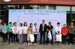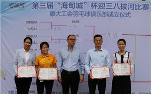 此次拔河比賽還穿插舉辦了康大工會羽毛球俱樂部成立儀式。儀式上,由海南康大投資有限公司副總經理、工會主席梁君先生為俱樂部第一屆會長林佳女士,第一屆副會長王春穎女士,女隊教練王虹蓉女士,男隊教練周義超先生頒發(fā)了聘任證書,并進行授旗。
