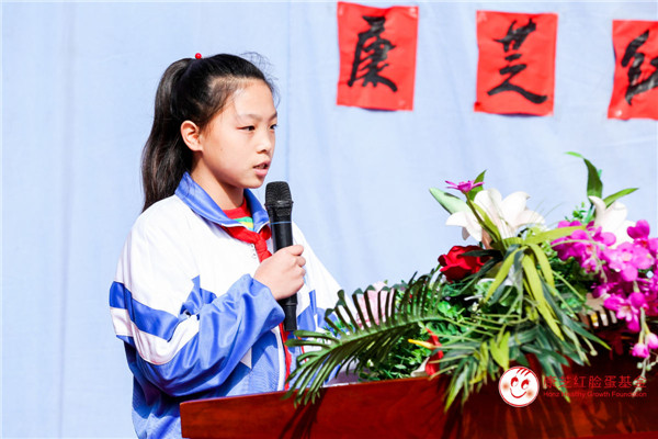 儀式開始,康芝藥業(yè)公共關系部總監(jiān)孟攀向學校師生傳達了來自康芝藥業(yè)及康芝紅臉蛋基金的關懷和問候,希望通過紅臉蛋圖書館可以讓孩子們閱讀到更多的書籍,能在物質和精神方面共同脫貧,成為國家的未來,繼承延安精神,弘揚愛心文化。同時也期待更多企業(yè)、社會人士加入關愛兒童健康成長的公益行列,秉承洪江游董事長的精神指示,幫助更多中國兒童健康成長。