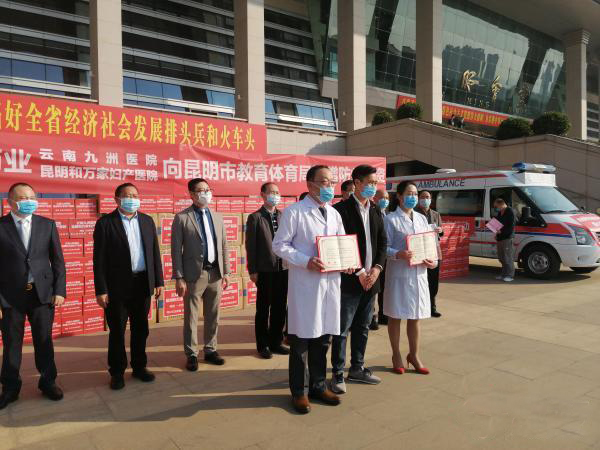 云南九洲醫(yī)院及昆明和萬家婦產(chǎn)醫(yī)院也迅速響應(yīng)集團(tuán)的號(hào)召,在做好醫(yī)護(hù)培訓(xùn)、預(yù)檢分診、院感防控、救護(hù)車輛管理等工作外,還先后向防疫一線捐贈(zèng)醫(yī)用口罩、酒精、消毒液等防疫物資。