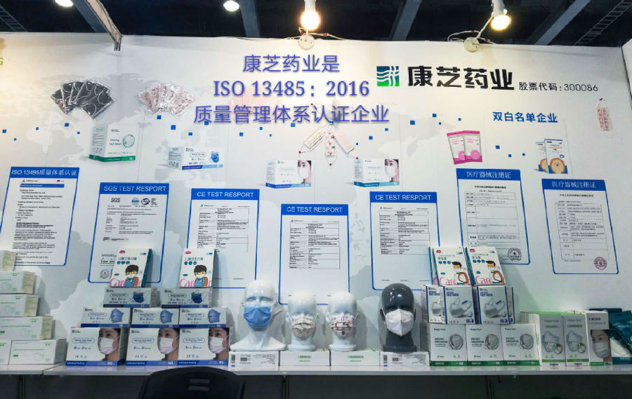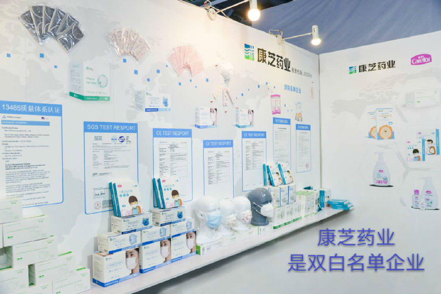 康芝藥業(yè)在此次展會上全方位展示了防疫產品,包括醫(yī)用口罩、兒童口罩、防護口罩以及消毒產品。
