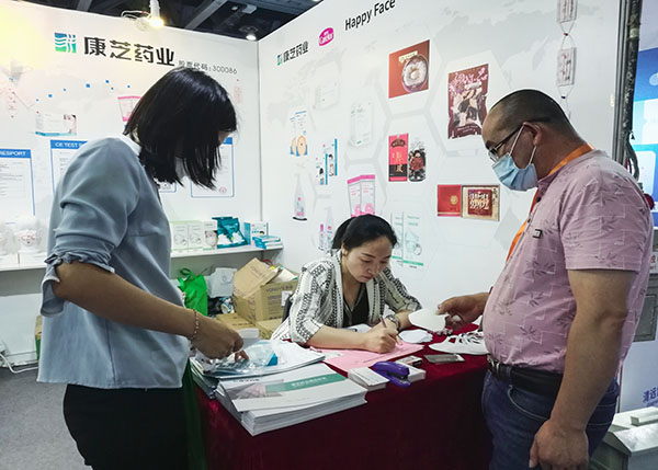 展會上,康芝藥業(yè)憑借品類豐富的防疫用品、制藥企業(yè)的質量保證以及細心周到的交流服務,吸引了大批海內外采購商等前來參觀、體驗和洽談。