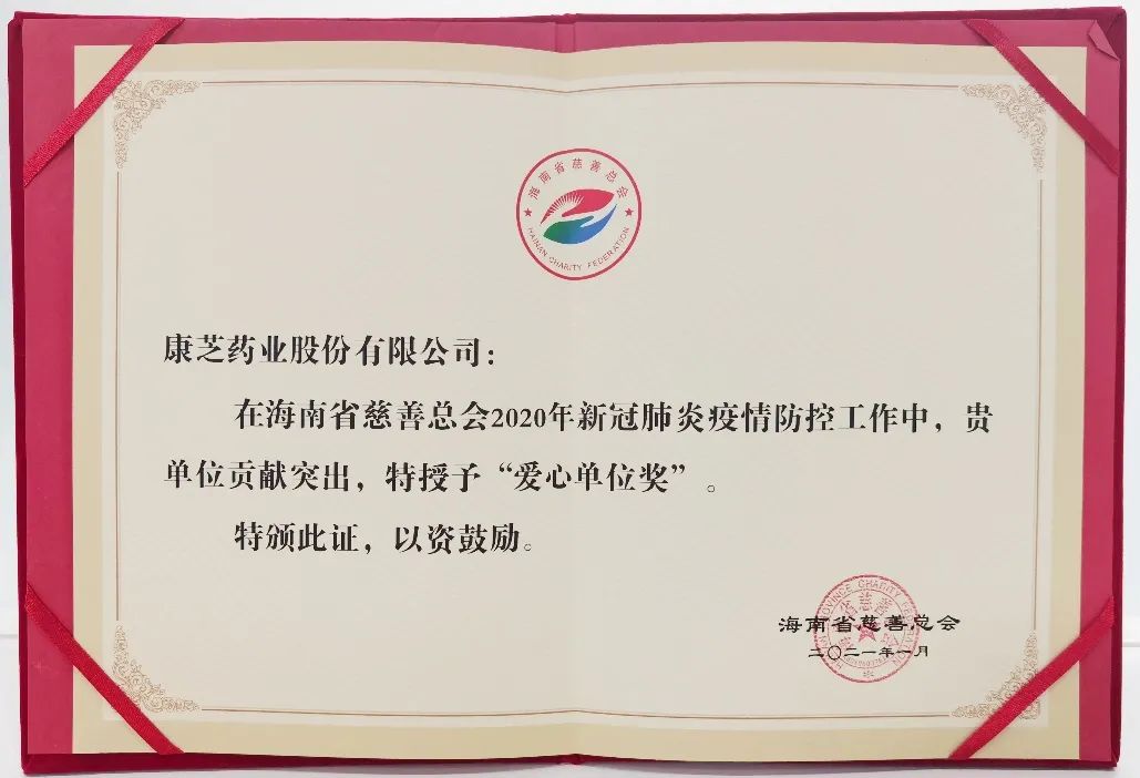 會上,海南省慈善總會授予康芝藥業(yè)“愛心單位獎”,高度認可康芝藥業(yè)在新冠疫情期間,不僅為海南無償捐贈大批疫情急需藥品與物資,還不計成本不計得失,8天創(chuàng)造了海南首條醫(yī)用口罩生產(chǎn)線,用實際行動守護海南人民健康的抗疫愛心事跡。