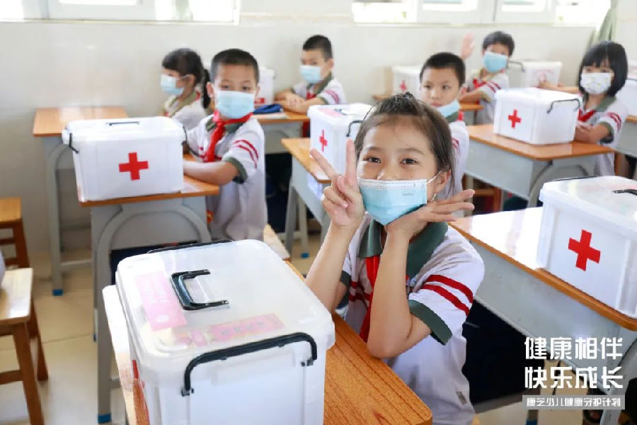 合水小學(xué)德育副校長(zhǎng)陳志峰表示:小小藥箱蘊(yùn)含著對(duì)偏遠(yuǎn)山區(qū)孩童的關(guān)心,也裝載著康芝紅臉蛋基金為祖國(guó)花朵健康的守護(hù)。有了這個(gè)愛(ài)心防疫藥箱,孩子們?cè)谝咔槊媲案赂?,更懂得關(guān)愛(ài)自己,并代表學(xué)校對(duì)主辦方及志愿者的善舉表達(dá)了感恩之情。