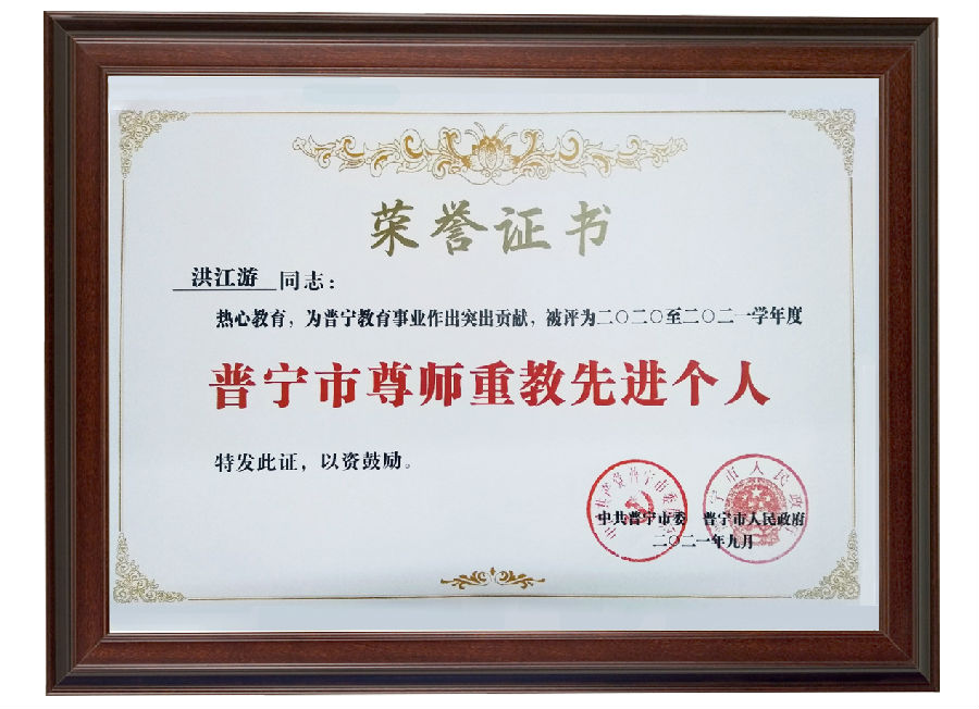 近日,中共普寧市委、普寧市人民政府發(fā)布了關(guān)于表彰2020-2021學(xué)年度普寧市優(yōu)秀教育工作者及尊師重教個人、先進(jìn)單位等的通報(bào)。知名潮商、愛心企業(yè)家、康芝藥業(yè)董事長洪江游先生被授予“普寧市尊師重教先進(jìn)個人”光榮稱號。