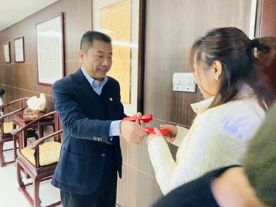 康芝藥業(yè)總裁洪江濤先生代表公司向康芝人親自派發(fā)虎年開工紅包,并致以新春的祝福及節(jié)日的問(wèn)候,寄托了公司對(duì)大家新年工作的美好祝福和期許!