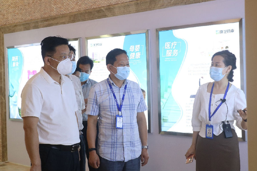 3月23日,廣西玉林中醫(yī)藥健康產(chǎn)業(yè)園管委會主任黨永新、管委會副主任唐軍、工委管委會辦公室主任伍華、玉林市市場監(jiān)督管理局醫(yī)療器械科科長蔣春林等領(lǐng)導(dǎo)嘉賓一行蒞臨康芝藥業(yè)海南總廠考察交流。