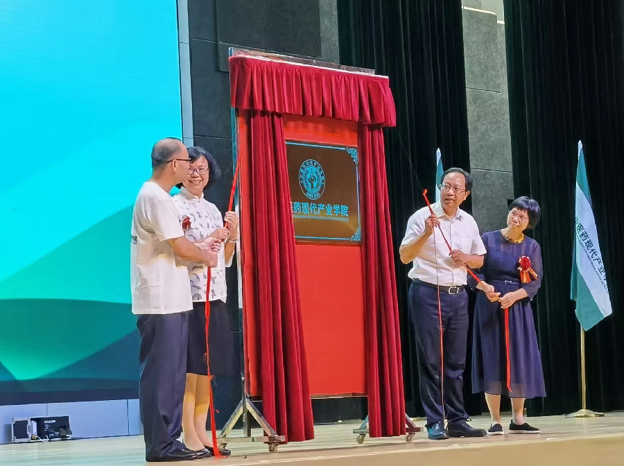 活動中,廣東藥科大學(xué)校長翟理祥研究員、云浮市政協(xié)主席梁麗嫻女士、君安醫(yī)生集團(tuán)董事長車軍先生和康芝藥業(yè)副董事長洪麗萍女士在儀式上分別致辭,并共同為“廣東藥科大學(xué)中醫(yī)藥現(xiàn)代產(chǎn)業(yè)學(xué)院”揭牌。