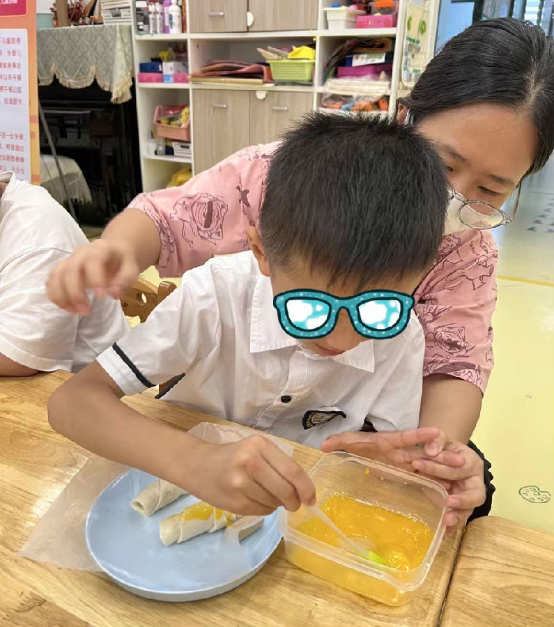 在烘焙過(guò)程中,志愿者生動(dòng)形象地給孩子們分享生活的小常識(shí),讓可愛(ài)的小天使在鍛煉動(dòng)手能力的時(shí)候,還能感受到親力親為的樂(lè)趣,激發(fā)他們的想象力,活躍大腦思維。