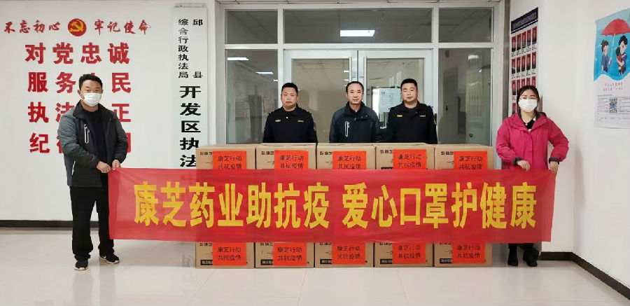 捐贈儀式上,河北康芝總經(jīng)理高其拴及質(zhì)量部經(jīng)理李風(fēng)霞代表康芝藥業(yè)向邱縣兩所敬老院、邱縣經(jīng)濟開發(fā)區(qū)管委會、邱縣教體局、邱縣奧博中學(xué)、香城固鎮(zhèn)政府、環(huán)境生態(tài)局邱縣分局、邱縣藍天救援隊、邱縣綜合執(zhí)法局、邱縣光榮院等單位送上我們的防疫物資,向堅守在抗疫前方的工作人員獻上了康芝的愛心與關(guān)懷。