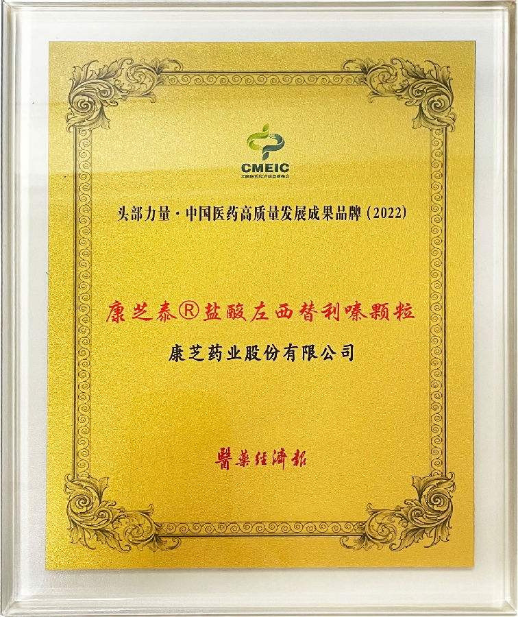 康芝泰·鹽酸左西替利嗪顆粒獲得“頭部力量 中國醫(yī)藥高質(zhì)量發(fā)展成果品牌”獎項