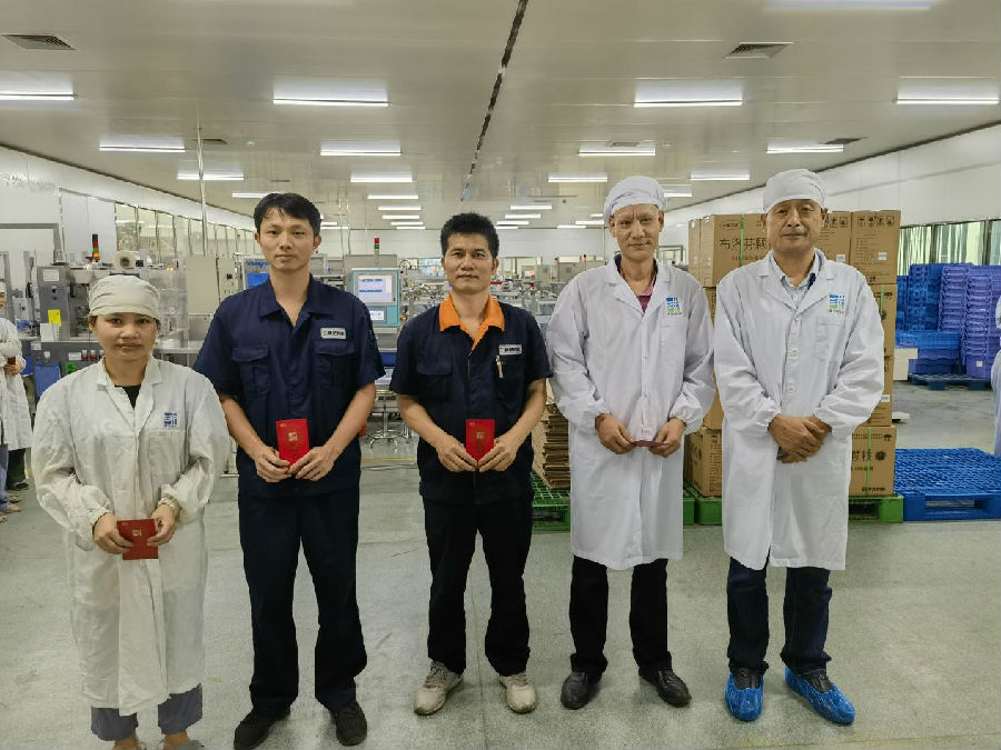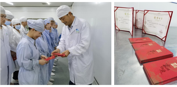 2023年4月3日下午,康芝藥業(yè)海南生產(chǎn)基地舉行生產(chǎn)效率表彰活動。海南生產(chǎn)基地總經(jīng)理高洪常為保供生產(chǎn)期間在生產(chǎn)線推進過程中做出突出貢獻的優(yōu)秀團隊、優(yōu)秀個人等進行了頒獎。活動共頒發(fā)優(yōu)秀團隊1項,個人突出獎4名,優(yōu)秀實習獎5名,對獲獎人頒發(fā)榮譽證書及獎金,對生產(chǎn)部提出表揚。