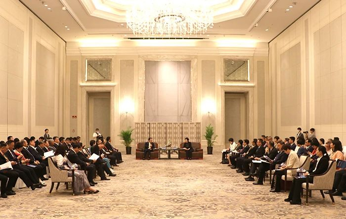 海南省委常委、統(tǒng)戰(zhàn)部部長(zhǎng)苗延紅會(huì)見(jiàn)連小敏及僑商代表一行,康芝藥業(yè)洪江游董事長(zhǎng)作為僑商代表交流分享