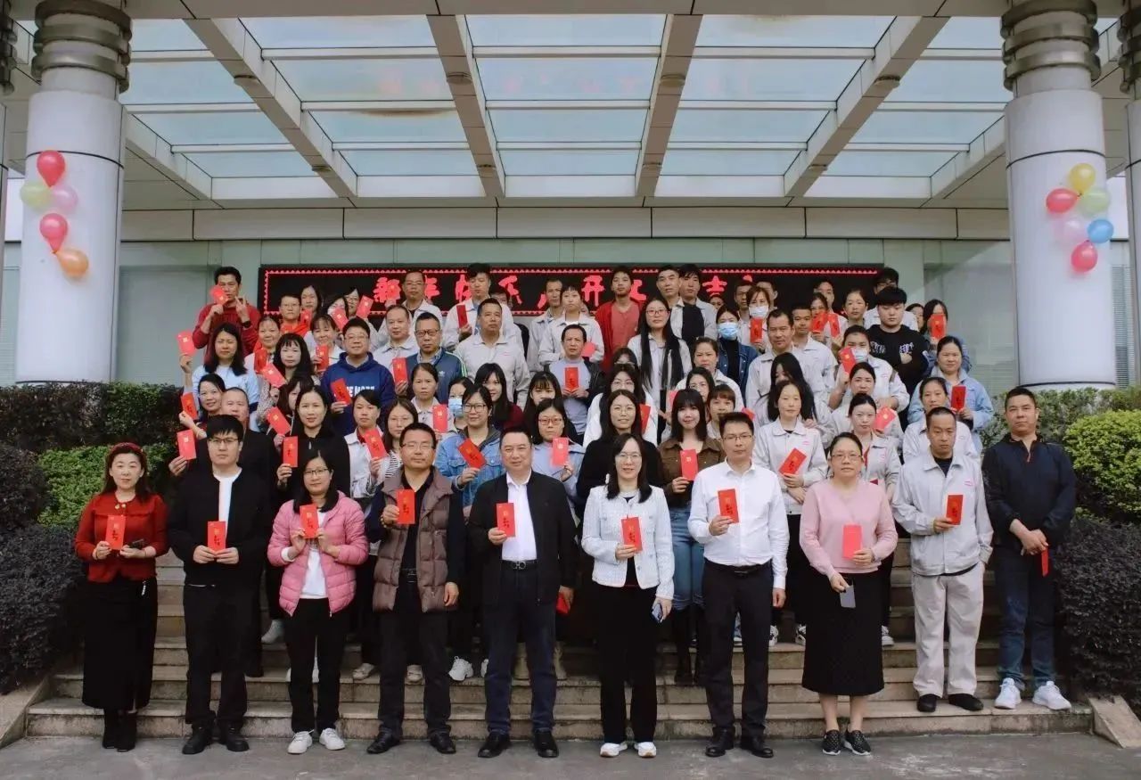 伴隨著現(xiàn)場(chǎng)喜慶的新年歌曲,大家自發(fā)地組成一條長(zhǎng)龍,向董事長(zhǎng)拜年,大家都收到了充滿(mǎn)祝福的開(kāi)工利是。