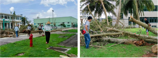 臺風(fēng)災(zāi)后,海南生產(chǎn)基地全體員工上下齊心,克服間歇性停水停電的困難,積極主動第一時(shí)間投入設(shè)備設(shè)施搶修、現(xiàn)場清理等家園重建工作,每一個(gè)忙碌的身影都充分體現(xiàn)出康芝大家庭中來自“家”的溫暖和情懷。