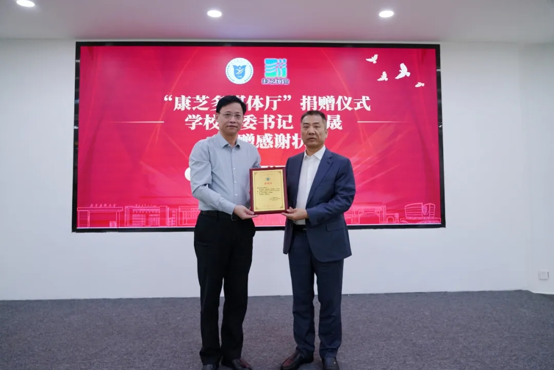 在與會師生、校友的見證下,劉晟書記向洪江游董事長頒發(fā)捐贈感謝狀。改造后的“康芝多媒體廳”,不僅配備了先進的設(shè)備,更融入了前沿的教育理念,將成為一個集教學、研討、娛樂、交流于一體的綜合性場所,為培養(yǎng)具有國際視野、創(chuàng)新精神和實踐能力的醫(yī)藥人才提供強有力的支撐。