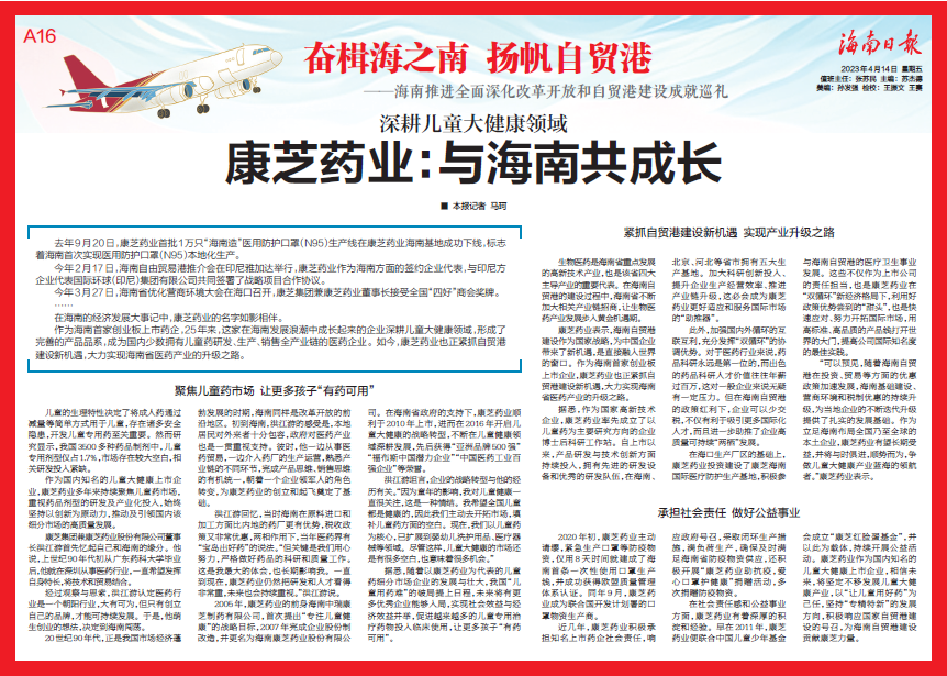 積極響應(yīng)國(guó)家自貿(mào)港建設(shè)的號(hào)召,為海南自貿(mào)港建設(shè)貢獻(xiàn)康芝力量。?