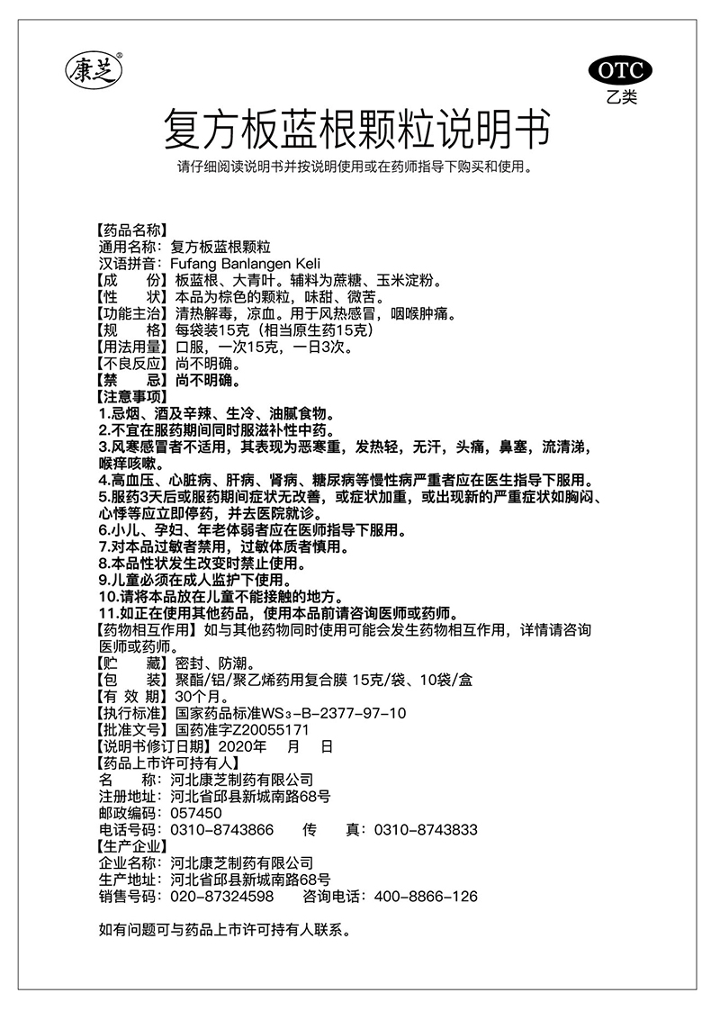 1.15g*10袋; 2.用于風(fēng)熱感冒,咽喉腫痛。