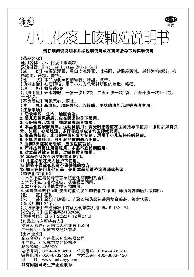 小兒化痰止咳顆粒