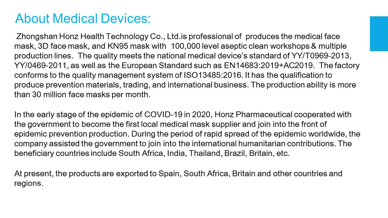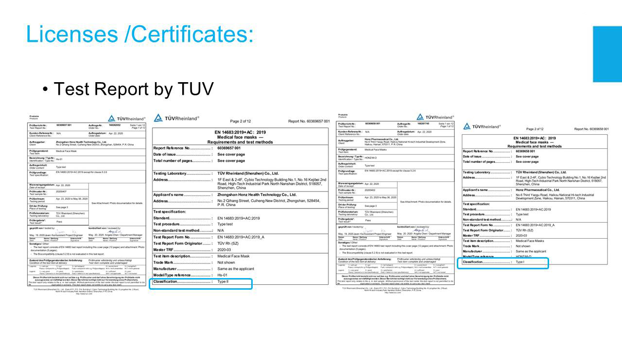 ·EN14683:2019 +AC:2019-Type I,Type II ·3-ply, Ear Loop ·Composed of Non-woven fabric and Melt-blown fabric